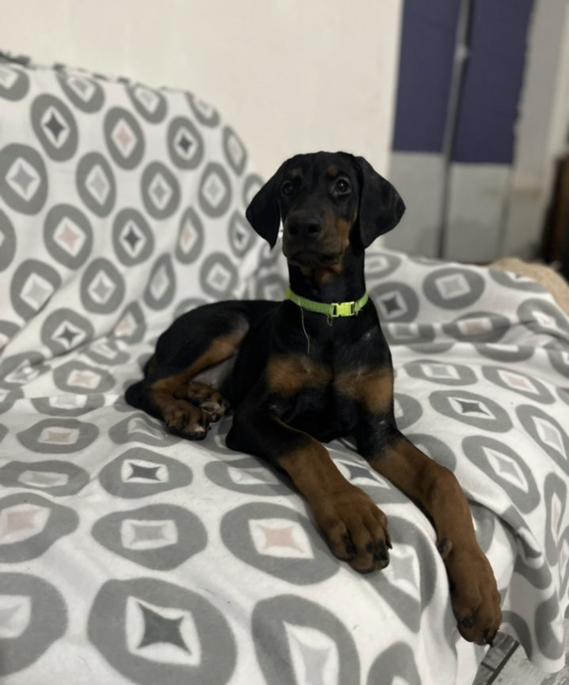 Окрас - чёрный с подпалом. Крупная, крепкая, имеет большой потенциал в племенном разведении, выставочной деятельности. Полностью купированна. Прививки по возрасту. Проведена полная дегельминтизация. Обработана от эктопаразитов. Психика отличная. Ориентирована на человека. Легко поддаётся воспитанию. Ладит с другими животными.
